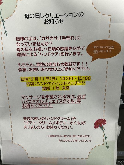 本日は日頃の感謝を込めて母の日のレクリエーションを開催しました。
