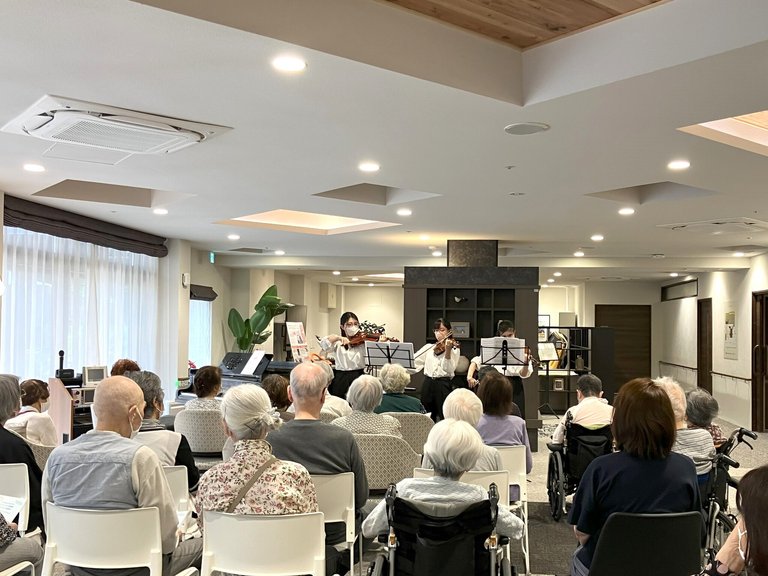 定期的に演奏会を開いてくださっていますが、今回は3名によるバイオリン演奏や、ピアノ伴奏を取り入れた曲目を準備してきてくださいました。