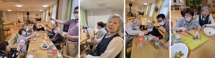 暑い日も多くなってきましたので今日はひんやりデザートを日々のレクリエーションとして一緒に作りました。