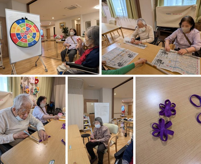 本日のデイサービスはダーツを行いました。大きな的に興味津々の皆様♪『大きいね〜、これなら当たる気がするよ♪』とやる気も十分です☆得点の計算も素早く行って頂け、とても盛り上がりました♪その後は新聞棒を作り、棒体操。体を伸ばしたり手のひらに乗せてバランスをとる等体をたくさん動かしました。最後はクラフトにてゆっくりされました。