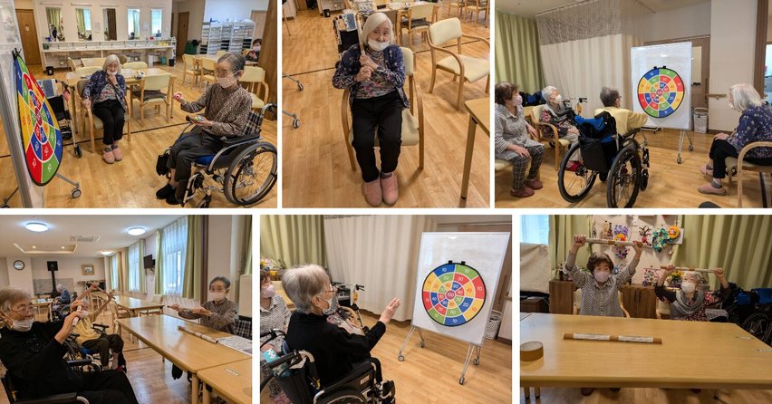 棒体操ではリラクゼーションの音楽を聴きながらゆっくりと体をほぐしつつ、生活で使える動作を取り入れて機能訓練も行いました♪