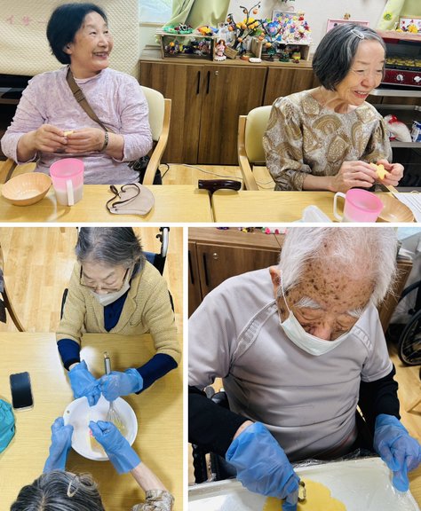 卵黄や粉類を混ぜ入れ皆様お待ちかねの型抜きタイムではそれぞれお好きな型を使用し作られていました☺️焼き上がりまでの時間はリハビリ体操をしてお腹を空かしいざ試食タイムです🤗