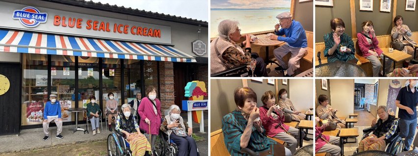 ご利用者7名と車に乗りブルーシールアイスに行きました。