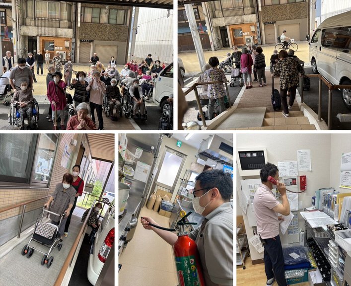 予定時間に近づくと玄関前で待機して、フライング気味の利用者様もいましたが20分で予定通り避難する事ができました😀。