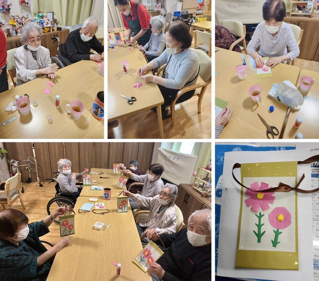 本日のデイサービスは、コスモスの花作りを行いました。