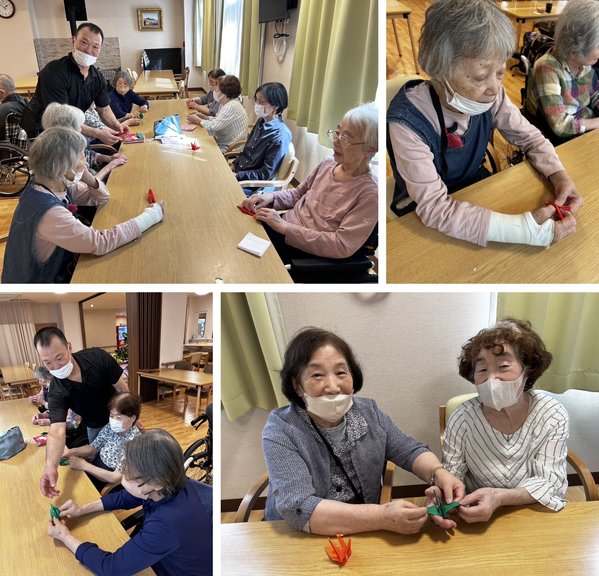 お互いの個性的な折り鶴をみながら談笑され、「また折り紙がしたいは」と言われて、昔を思い出される楽しい時間となりました。