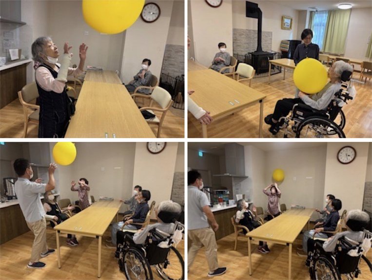 最近あまり体を動かしていないので、運動不足解消の為風船🎈バレーを行いました。次の人に上手にパス出来るよう「そっち行ったよ!」と声かけながら、和気あいあいと楽しみました。