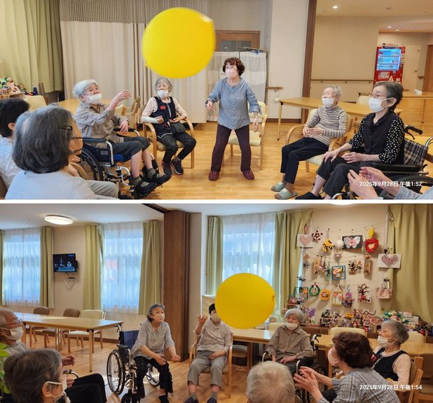初めはなかなか続きませんでしたが、皆様で「下から優しくね。」と、声を掛けながら自分の所へ来た風船🎈を他の方へ繋げておられました✨