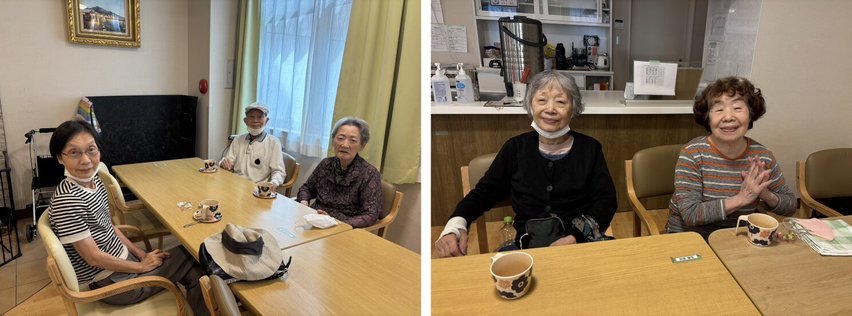 朝食後、ご利用者様よりコーヒーがのみたいんだけど、、、とお声がけ頂きました。コーヒーの香りに誘われて他ご利用者様からも、私にも淹れてほしい!とのお声が。コーヒーを飲みながら昔話に花を咲かせ、穏やかなひとときを過ごされていました♪