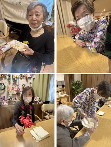 本日のデイサービスはおはぎと彼岸花を作りました。