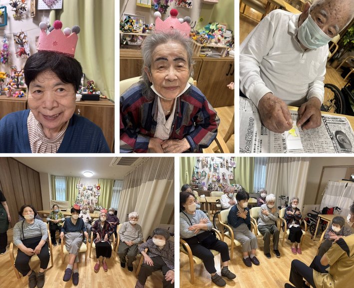 誕生日会は、二名おみえでしたので、皆さんでお祝いしておやつを召し上がっていただきました。