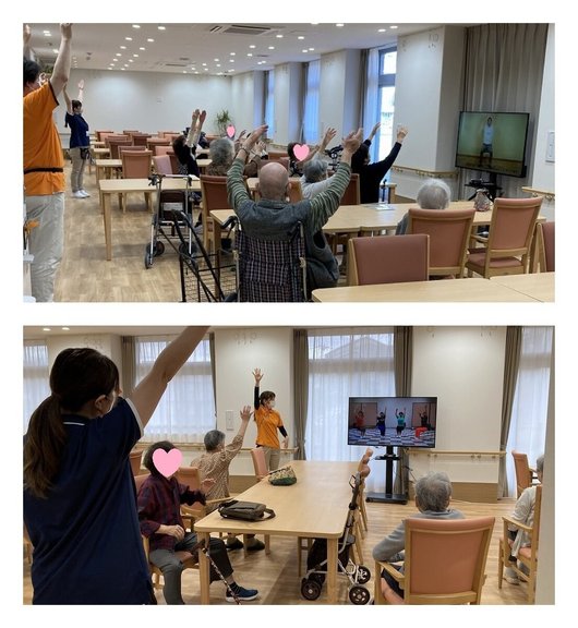 さまざまな種類の体操があり、「梅干し体操が良いな~」「次は何の体操?」などと入居者様とお話しながら楽しい体操の時間を過ごしています😍