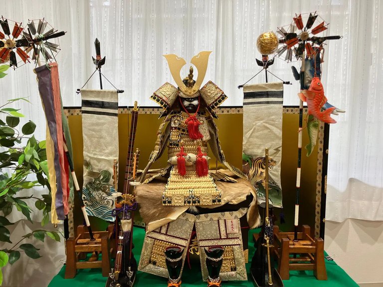 5月5日子供の日ですね~1階ロビーに五月人形の兜を飾りました👀