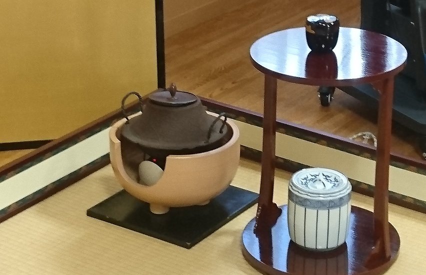 1/10(金)往還ホールにて新春お茶会が行なわれました。お茶の先生にお抹茶をたてて頂き、可愛らしい和菓子を前にご利用者の皆様は嬉しそうでした。また、茶道具やお花、金屏風、音楽等で落ち着いた雰囲気の中で一時を過ごされていました。