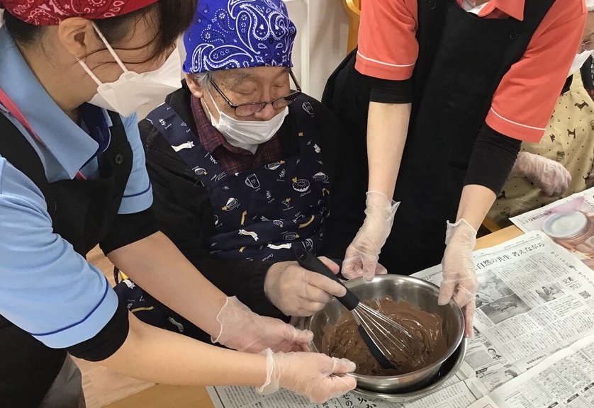 バレンタインデーの特別なイベントとしてジョイ麻生では、おやつレクを開催しました。