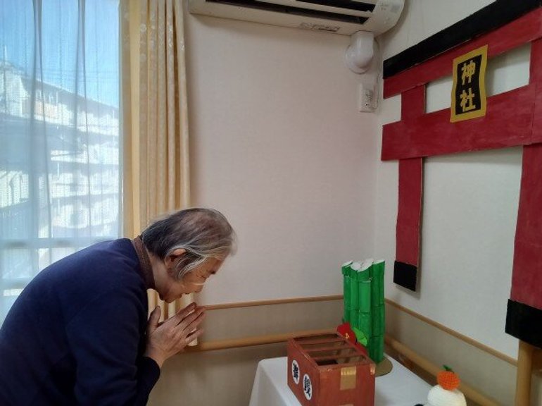 スタッフ手作りの神社は「すごいね~」と大好評!