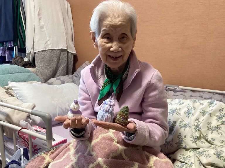 クリスマス飾りを製作しました♪毛糸で帽子とツリーを作って、雪だるまは、キッチンペーパーとティッシュで作りました^_^
