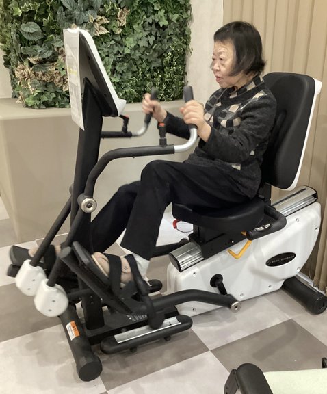 体は元気になるし、歌が歌えて楽しいし、エアロバイクをとても気に入っておられます。