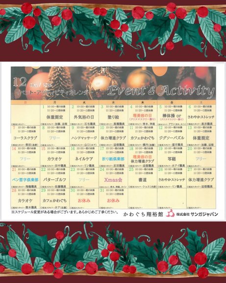 ランチ制作やクリスマスのイベントもあるみたいです!