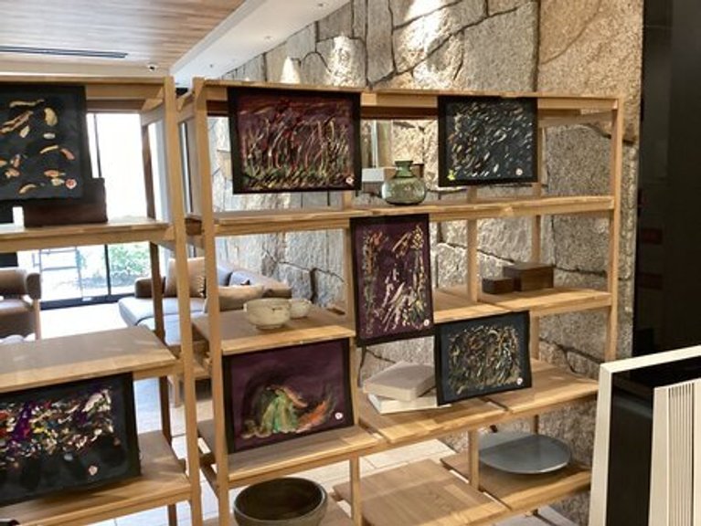入り口入ってすぐのリハビリ室の前に飾らせていただいております♪