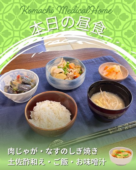 本日の昼食は、肉じゃが・なすのしぎ焼き・土佐酢和え・ご飯・お味噌汁です。