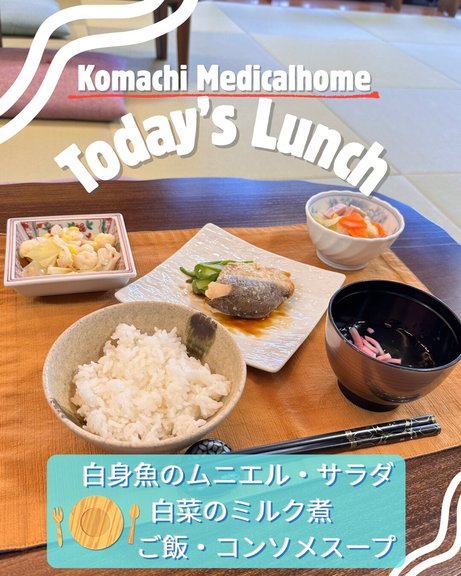 湖街メディカルホームでは、自営の厨房で調理し、管理栄養士のもと栄養バランスと旬の食材、出来立てにこだわって多彩な食事メニューをご提供しております。