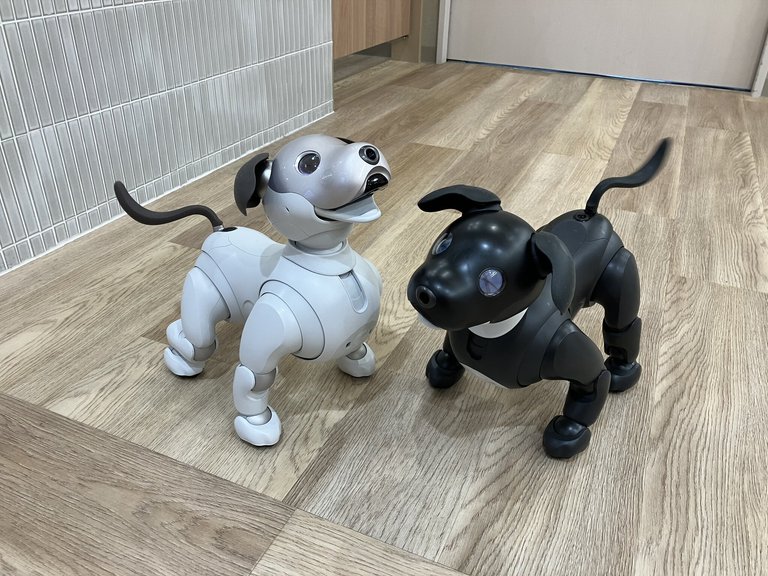 白いaiboの「はな」と、黒いaiboの「ことは」です。