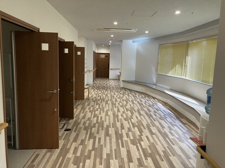 10カ所の個室が横長に並んでいます。窓から外の光が入り開放的な空間です。