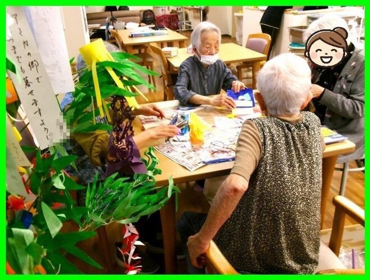 7月7日の七夕に向けて、笹に飾り付けをしました。