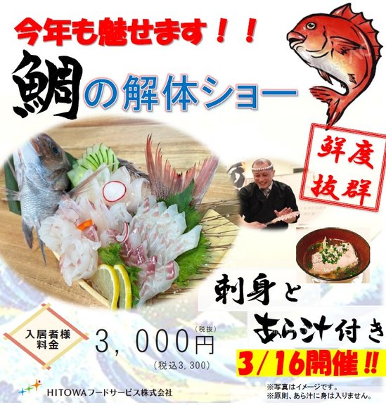 今回のブログは 3/16に予定しております、鯛の解体ショーとなります。