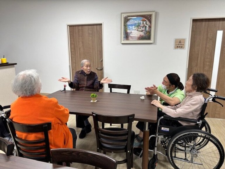 月に一回、1階フロアにて桜寿カフェ(認知症カフェ)を開催しております。本日もご希望のご利用者様がご自分の好きな飲み物を頼み利用者様方同士で団欒されていました。