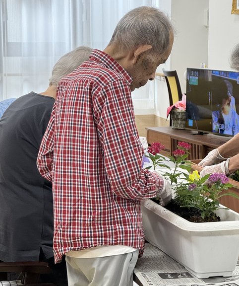 一人一花運動の秋の取り組みとして、皆さんと一緒に鉢植えを作成しました。