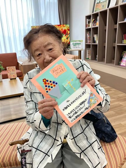6月にお誕生日を迎えられた入居者様にバースデーカードをお渡した様子です~!