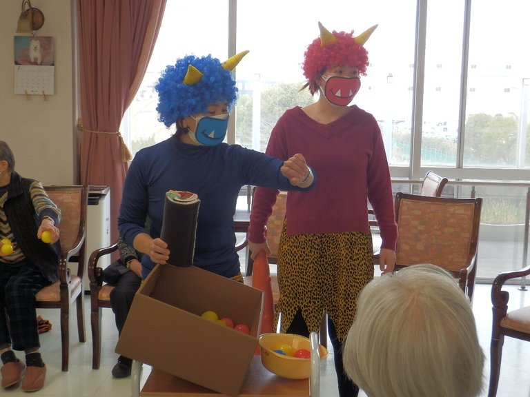 節分 ケアハウス佑和に赤鬼と青鬼がきました。