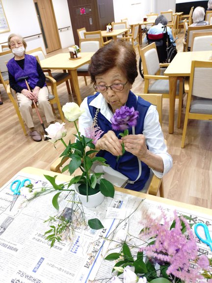6月のフラワーアレンジメントの際のお写真です。毎回、10名以上のお客様が参加されています。