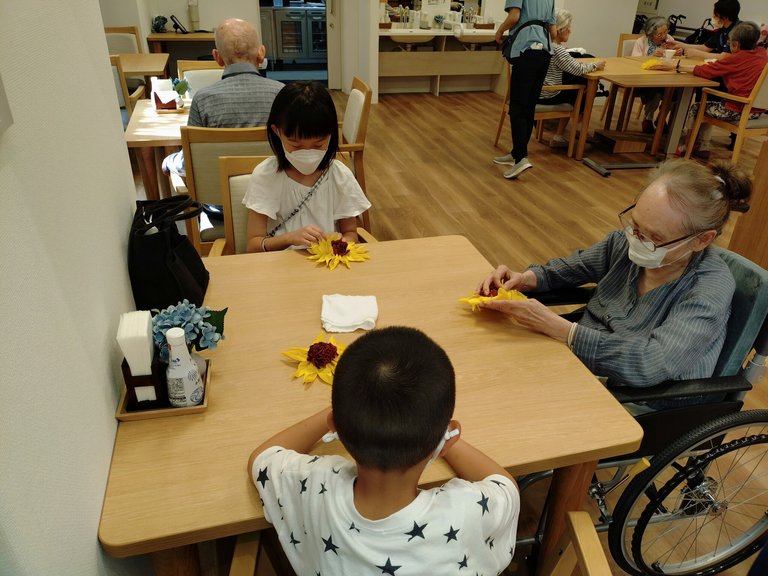 お孫さんと一緒に作ったひまわりは、ひまわり畑ではなく、お部屋に飾って楽しい時間を思い出していただいています♪