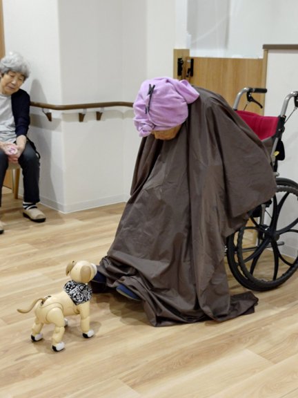 髪の毛のカラーリングで少しお待ちいただいている間に、ホームのアイドル犬(aibo)「きなこ」が、暇つぶしのお手伝いとしてやって来てくれました。
