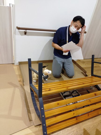 ホーム長が取扱説明書を読みながら一生懸命組み立てていました。