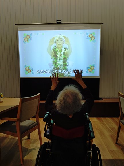 映像を見ながら、振付の練習を行ったり音楽にあわせてゆっくりとしたリズムで無理なく踊ります♬