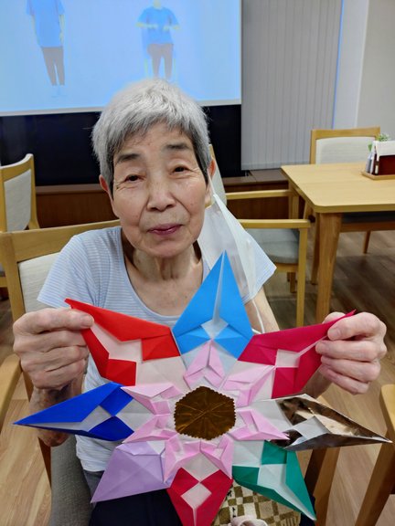 折り紙が得意なスタッフのR氏と、お客様のI様が中心となって皆さまに教えながら色んなものに挑戦しています!