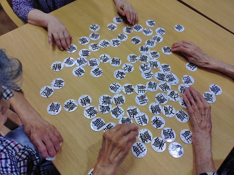 同じ漢字が4つずつあるので、まずは同じ種類を集めていただきました。