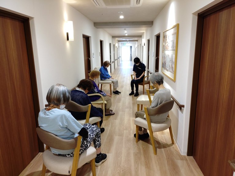 先日、少し時間があったときにスタッフが1階の廊下で、お客様にお声かけして体操をしてくれていました!