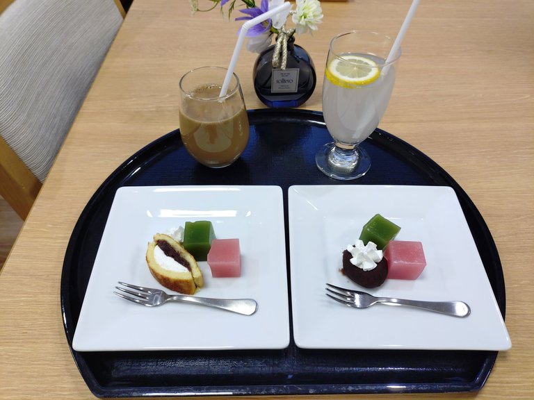 今月のメニューは「和菓子3種盛り」で、生クリームどら焼きと羊羹(梅・抹茶)でした。食事形態が違うお客様も皆様全員召し上がっていただけるように工夫して提供させていただきました。