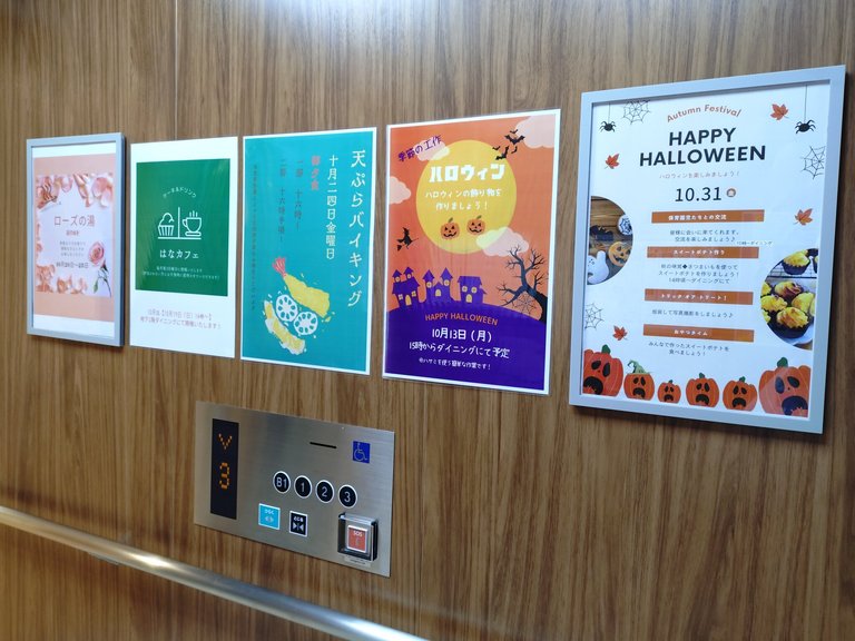 皆様にワクワク感や楽しみを味わっていただきたいと、エレベーター内にポスターを掲示しています。