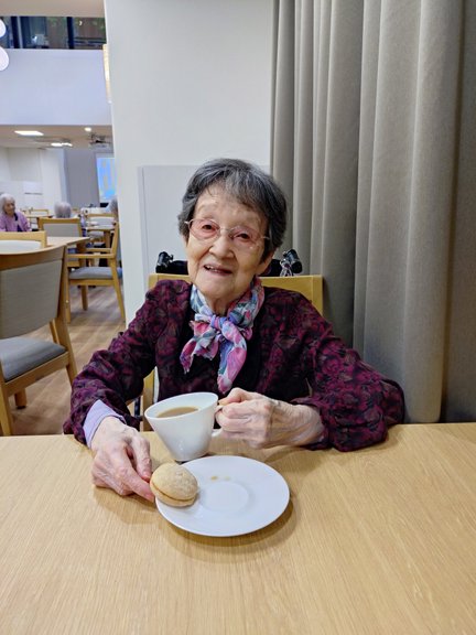 大好きなお菓子をおやつに、午後のひとときを楽しまれています♪