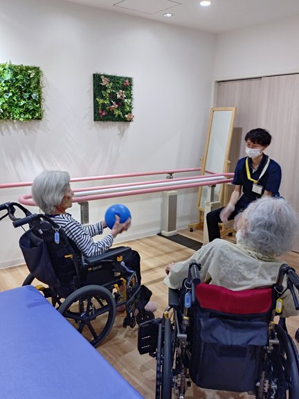 当ホームには専任の理学療法士がいるので、皆様のお体の状態にあわせて、運動機能の維持や向上を目的としてリハビリを行っています。