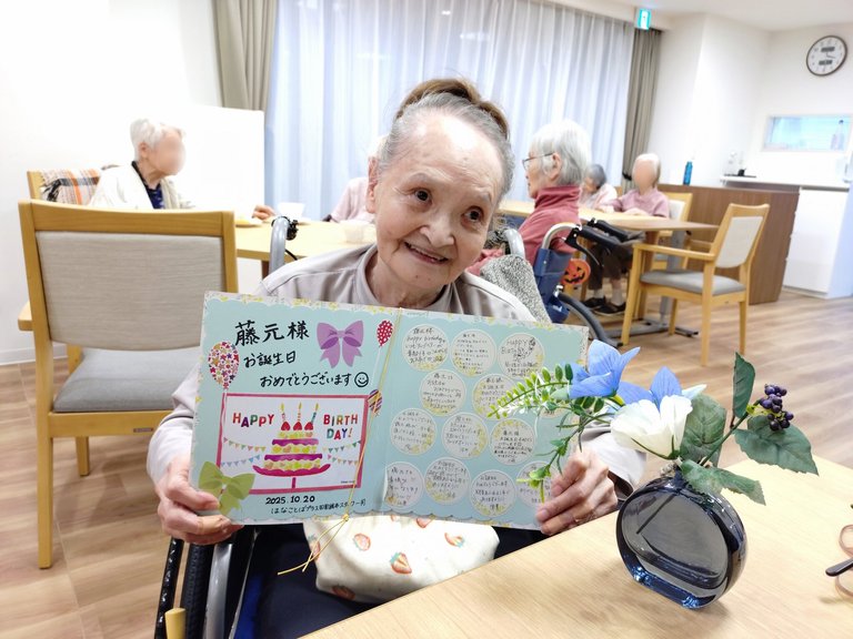 はなことばプラス田園調布では、お誕生日当日にスタッフからのメッセージが入った色紙をお渡しさせていただいています🎊