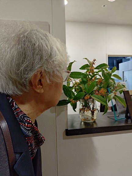 お客様のご家族様が、お家のお庭に咲いていた「金木犀/きんもくせい」を持ってきてくれました!