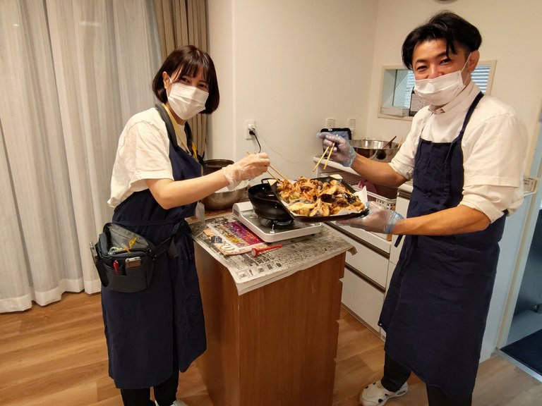 ホーム長を中心に、ナース、ケアマネージャーが目の前でたくさんの量を一生懸命揚げている姿を見て、お客様はライブ感も楽しんでいただけたようです♪