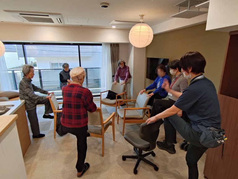 はなことばプラス田園調布では、ダイニングで毎朝体操の時間を設けています。